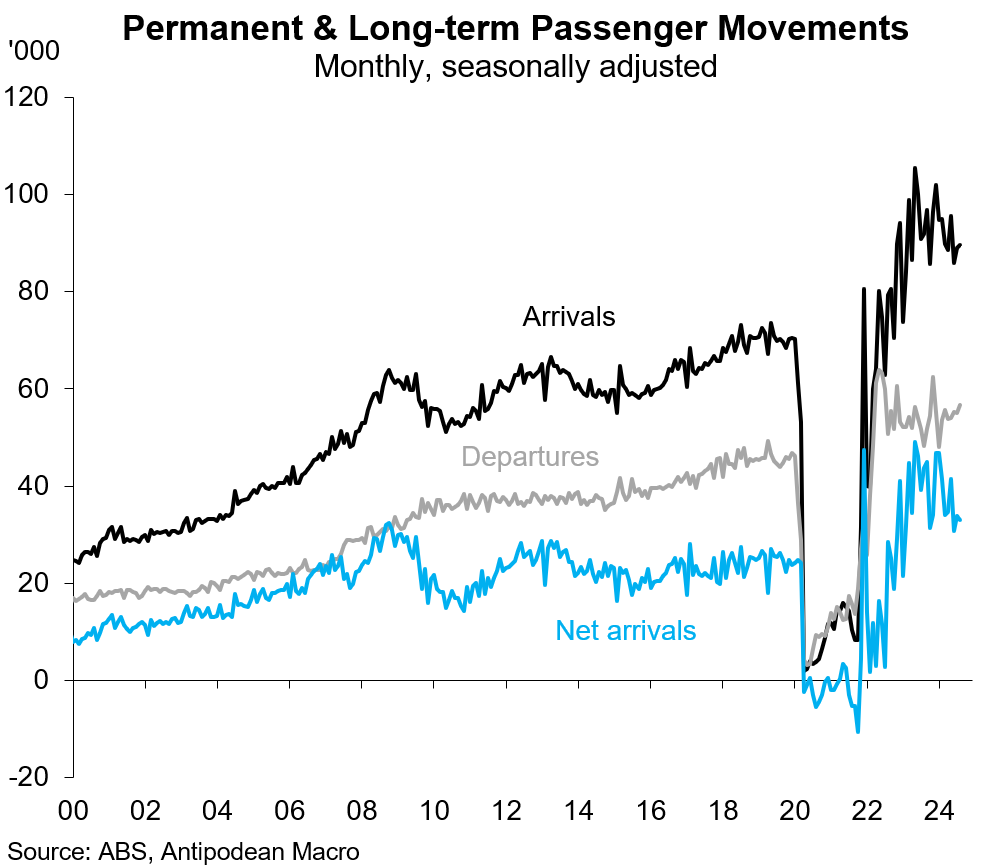 1. The monthly proxy for Australia’s net immigration - based on permanent and long-term passenger movements - was little changed in August…