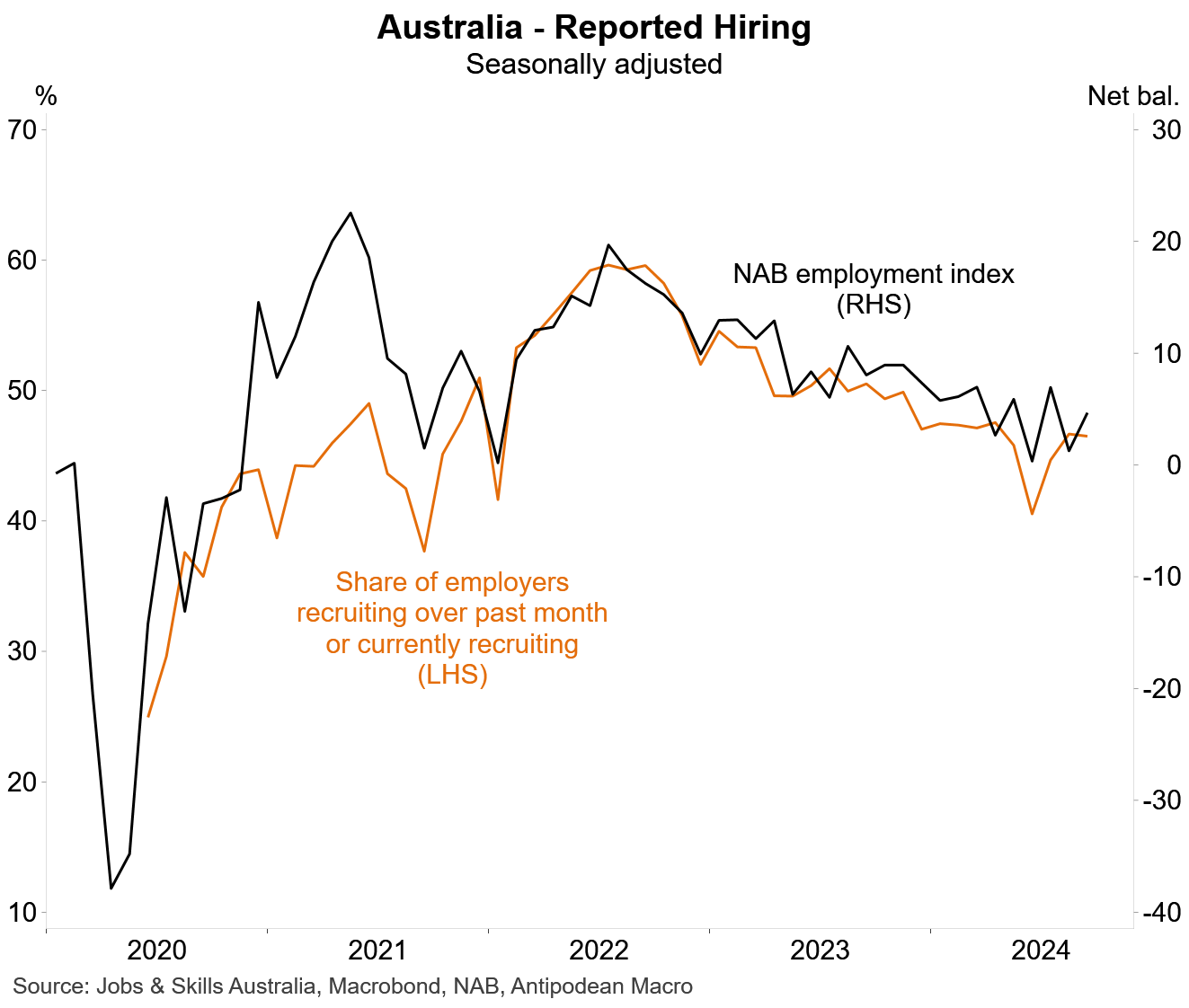 1. The share of employers in Australia that are recruiting stabilised in September and is telling a similar story to the NAB survey employment index.