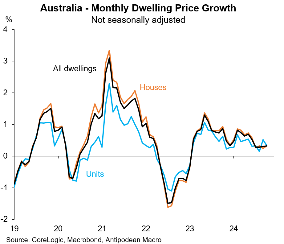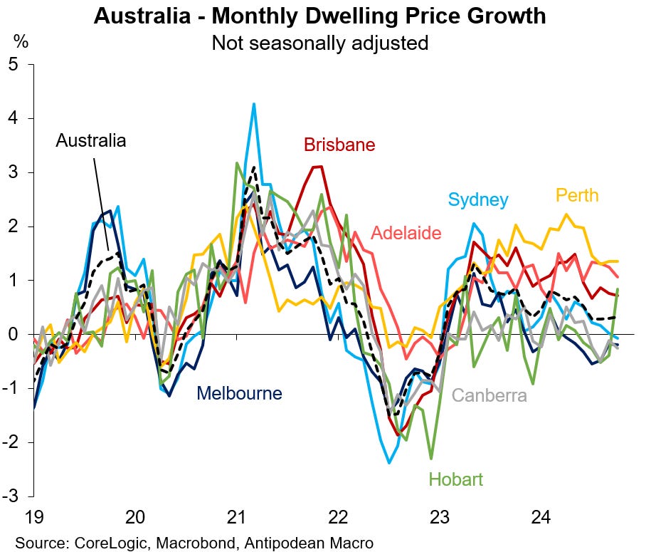 …with dwelling prices falling in Sydney, Melbourne and Canberra.