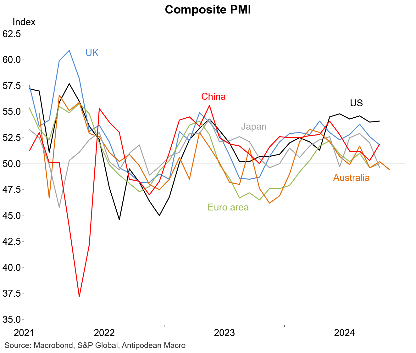 2. While Australia’s composite PMI does not map that closely across to either GDP or domestic demand growth, the weakness in the headline PMI suggests that activity growth has remained subdued into late 2024.