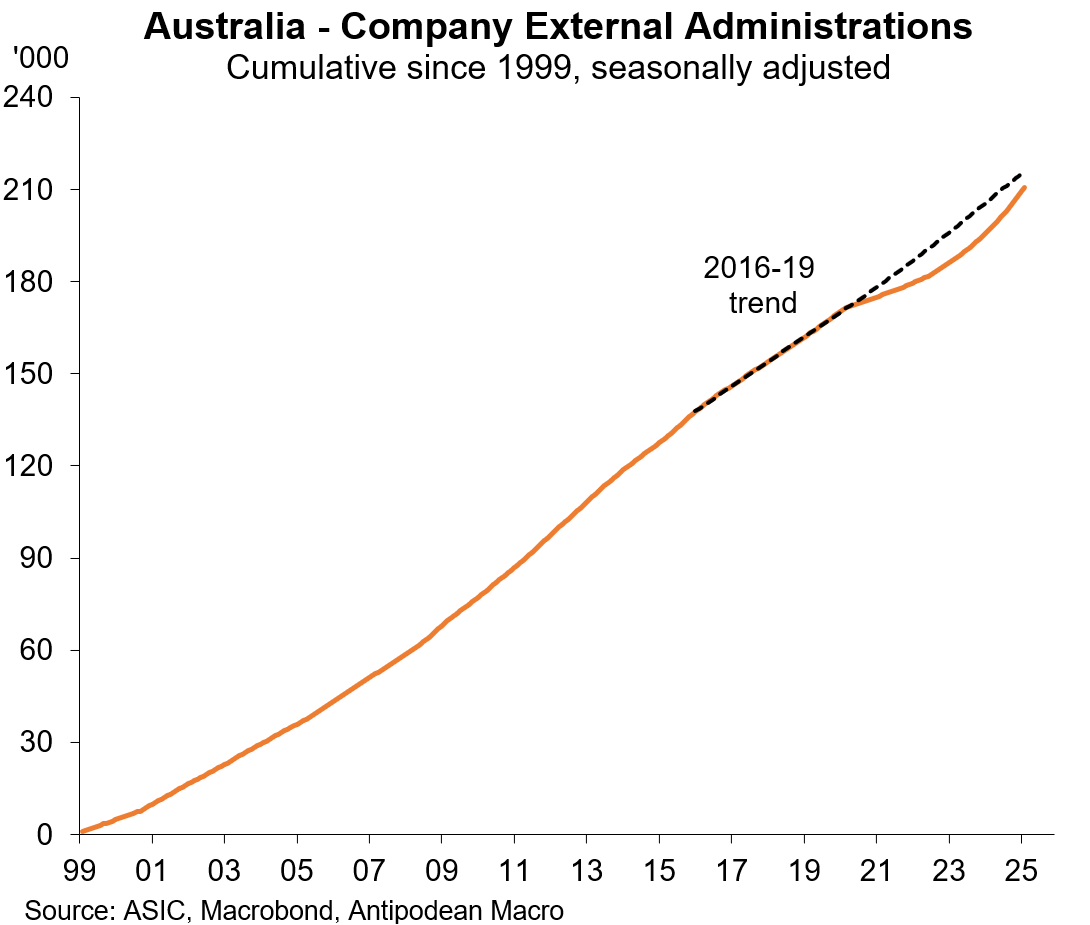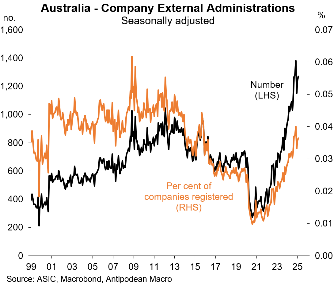 1. The number of company insolvencies in Australia remained at a high level in February.