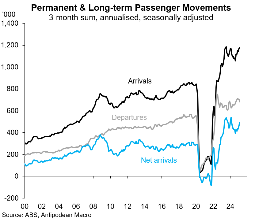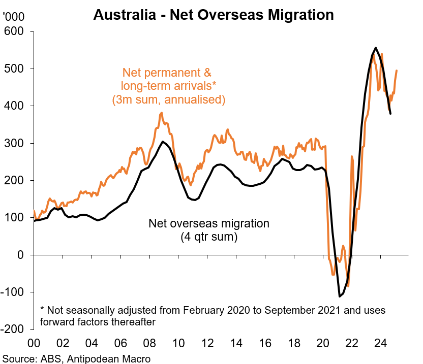 1. The monthly proxy for Australia’s net immigration strengthened again in February in 3-month average terms.