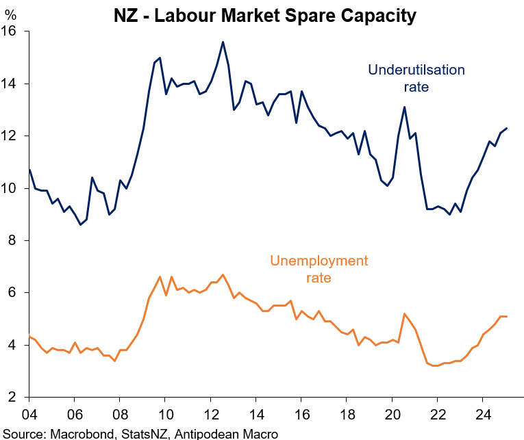 The labour underutilisation rate in New Zealand - a broader measure of labour market slack - rose modestly in Q1.