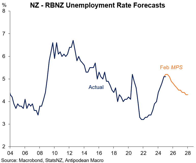 1. New Zealand’s unemployment rate was unchanged at 5.1% in Q1 and against expectations for a small rise. This was lower than the RBNZ’s February MPS forecast but is consistent with our view that the kiwi economy has turned the corner.