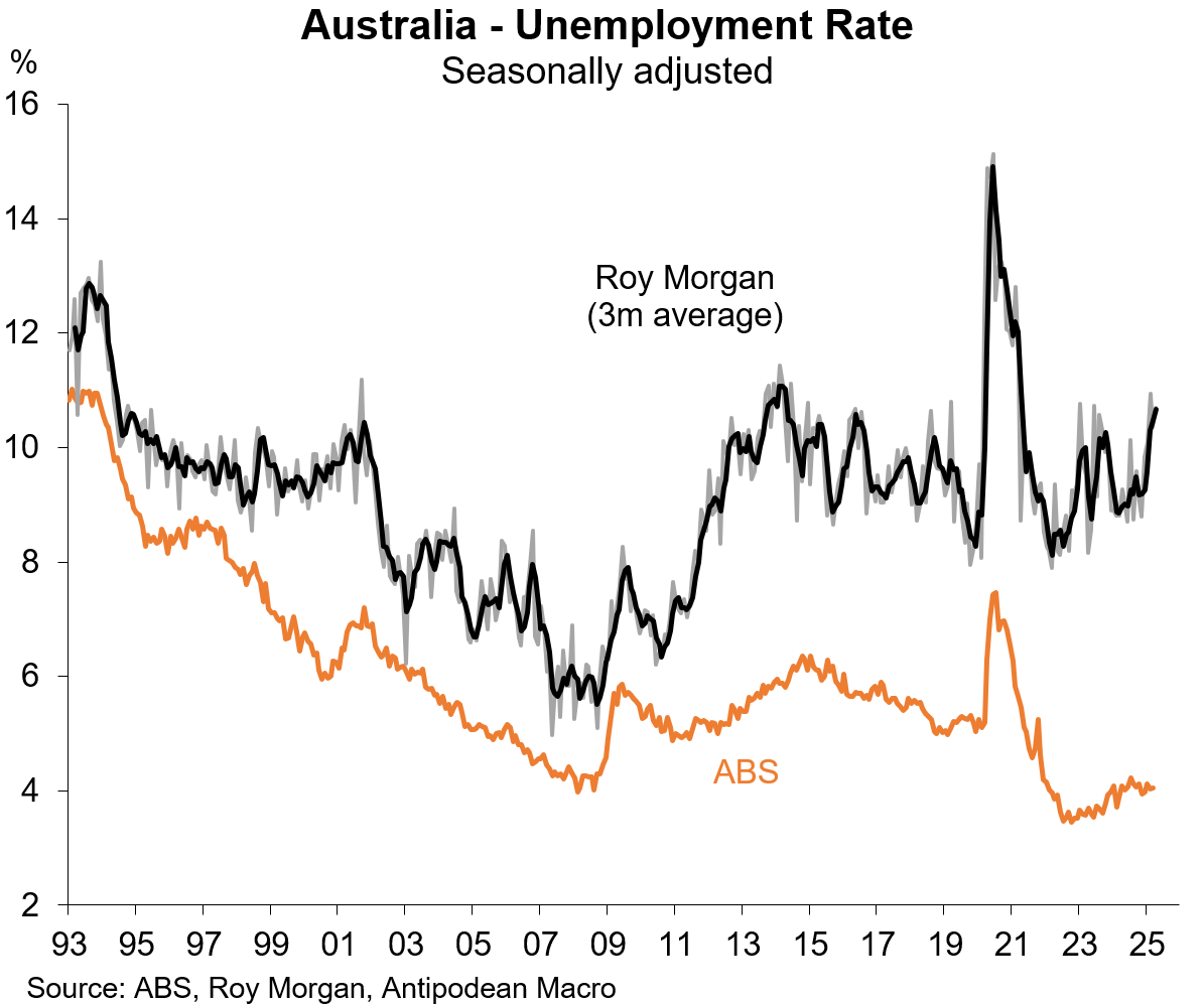 1. Roy Morgan’s unemployment rate measure for Australia has trended higher in recent months.