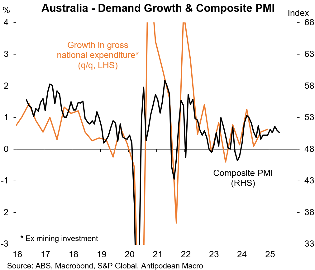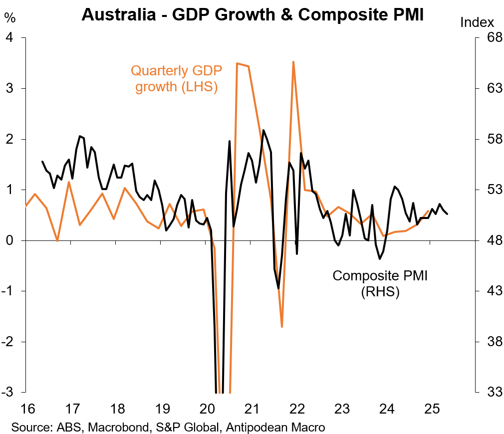 1. Australia’s flash composite PMI for May declined to 50.6 but continued to signal OK growth in the economy.