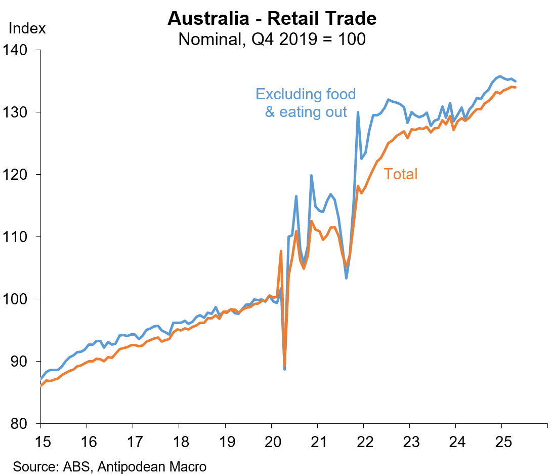 Excluding food & eating out, sales declined 0.3% m/m and have fallen since the sales-induced peak in December last year.