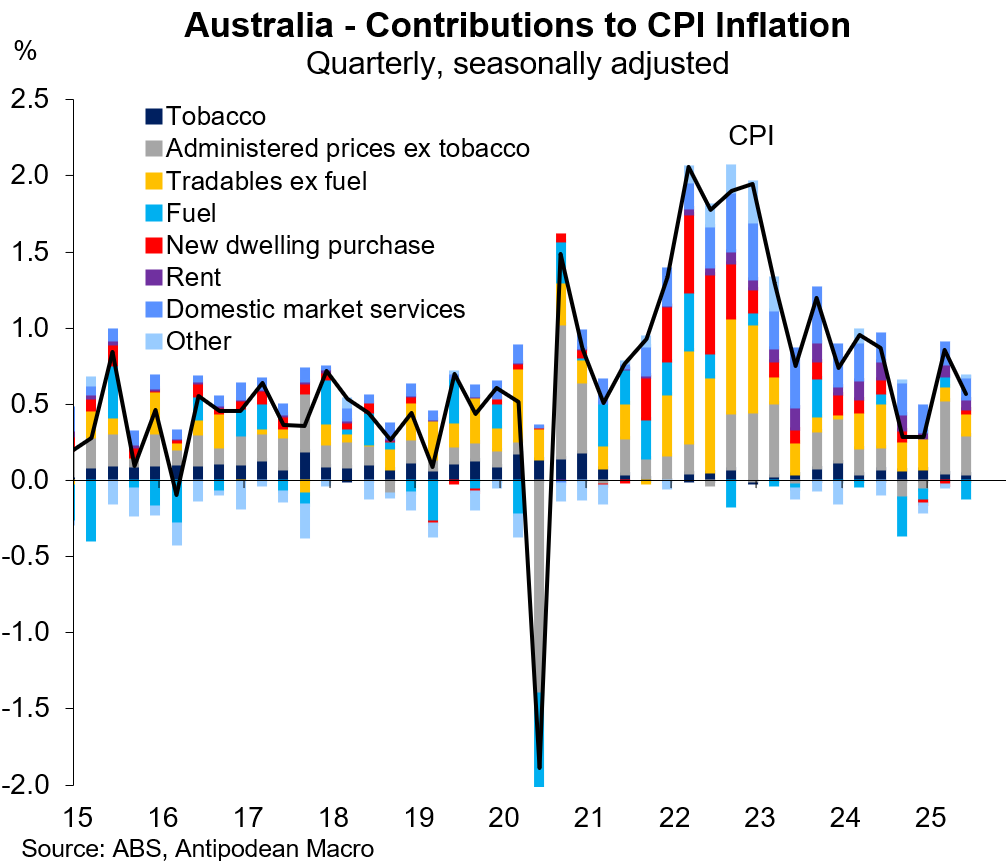 Softer-than-expected holiday travel and government-administered price inflation - mainly health and utilities - accounted for most of our 0.1ppt forecast error for headline inflation. This was largely because information contained in the monthly CPI indicator for the month of June printed below our estimates.