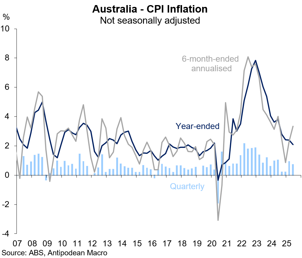 The seasonally adjusted CPI rose +0.6% q/q, a touch softer than our nowcast (+0.7% q/q).
