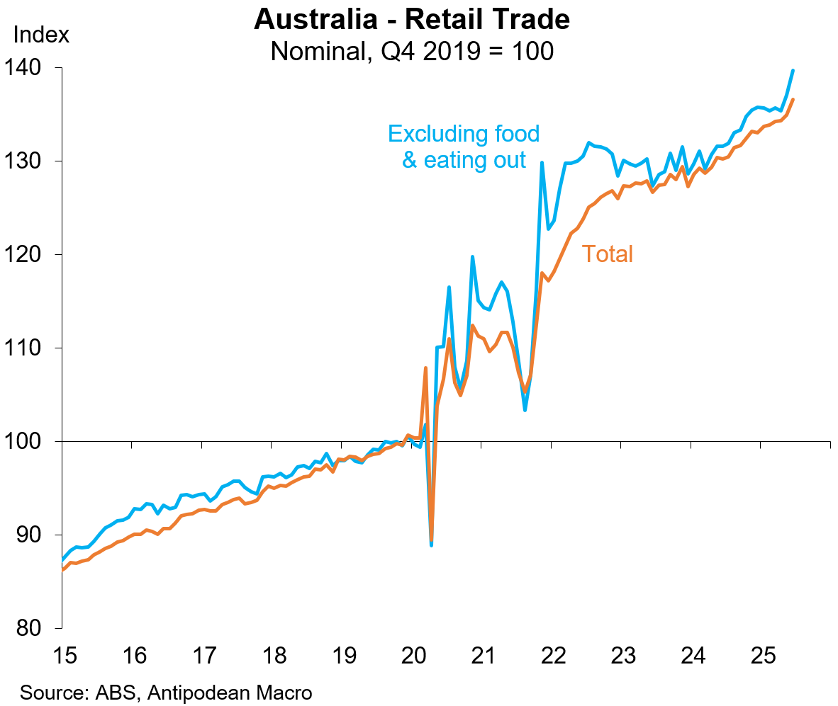 This is the last retail trade release with the ABS transitioning to the monthly household spending indicator which has broader coverage.