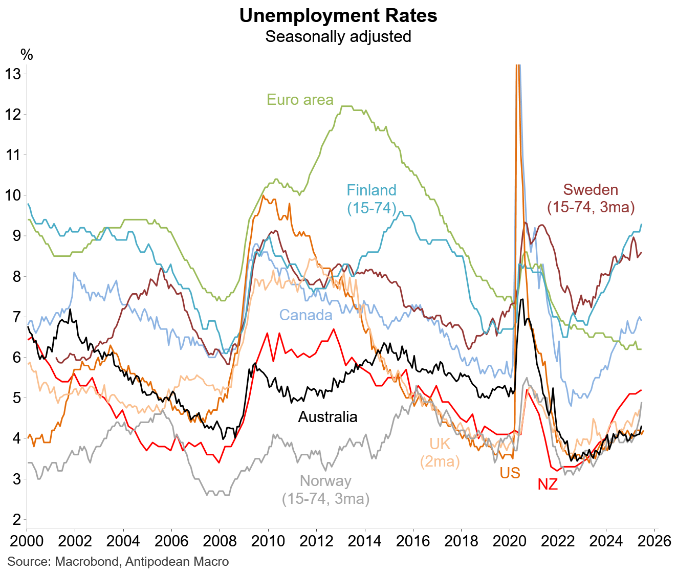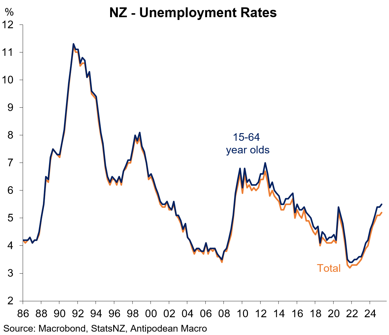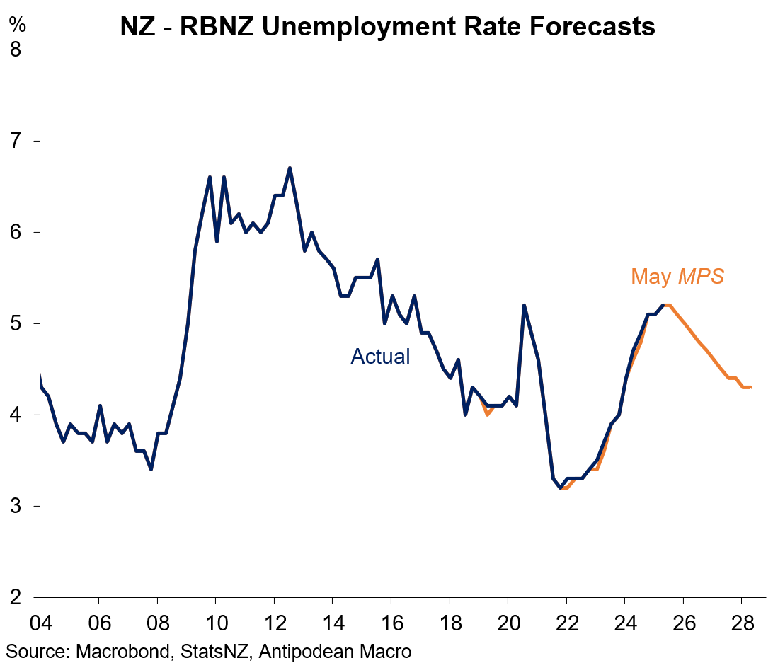 1. New Zealand’s unemployment rate rose 0.1ppts to 5.2% in Q2. This was in line with the RBNZ’s May MPS forecast.