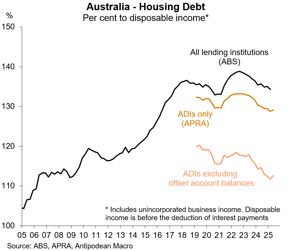 Mortgage offsets account for around one-sixth of total household deposits in Australia and reduce the housing loan-to-income ratio by 16ppts.