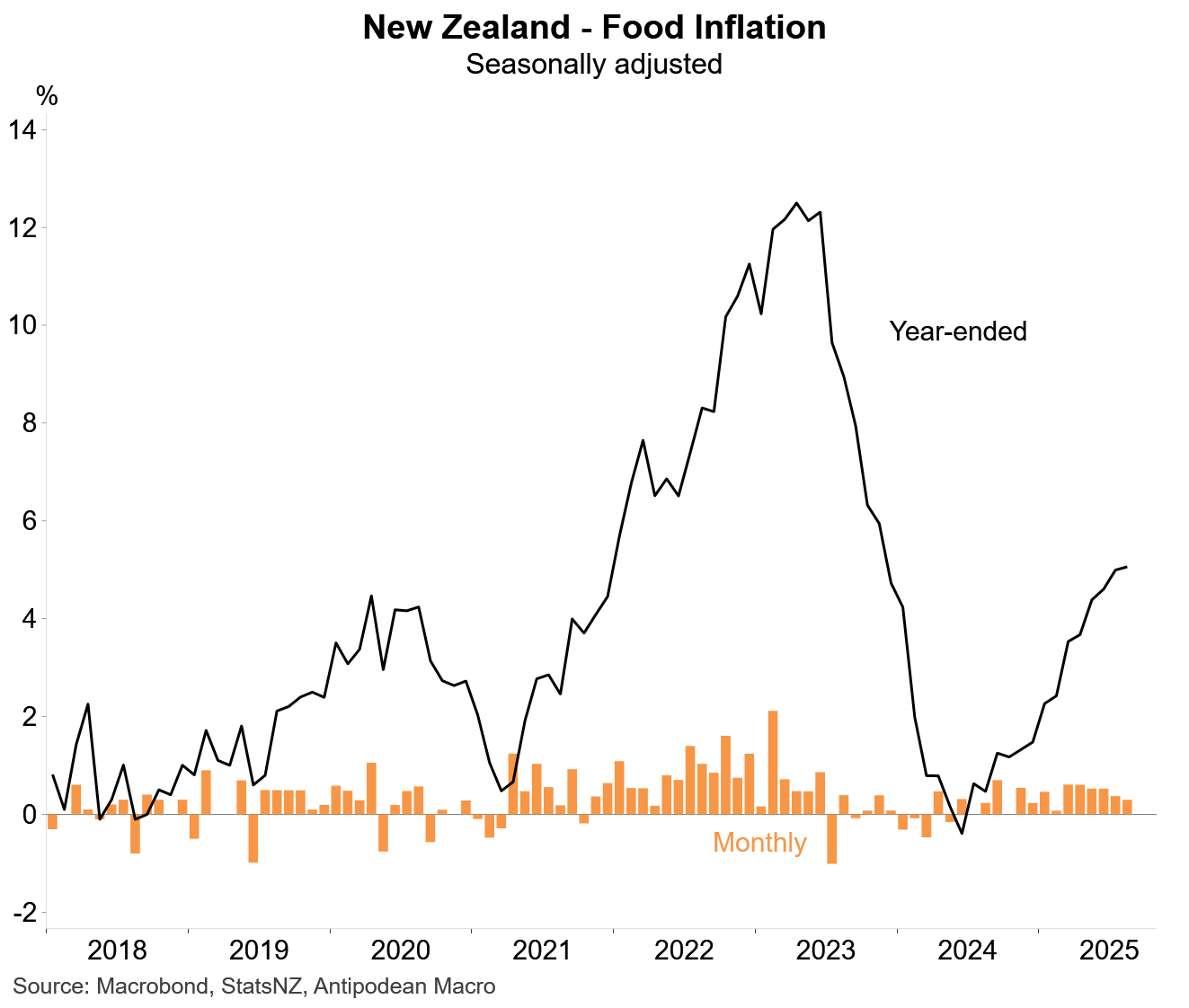 1. Food prices in New Zealand (18.8% CPI weight) rose 0.3% m/m in both original and seasonally adjusted terms in August. Monthly food inflation has moderated in recent months but has remained relatively strong.