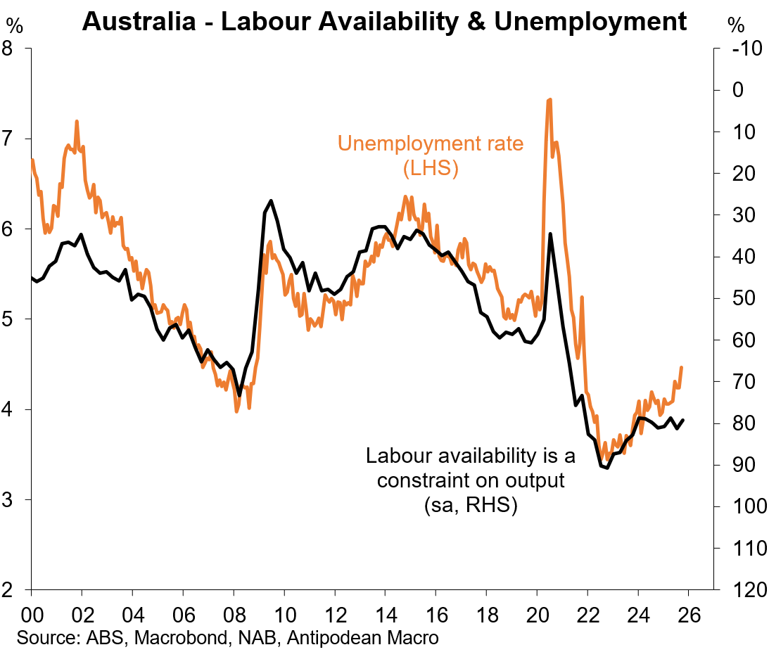 1. The share of Australian firms reporting that labour availability is a constraint on their output has been little changed for around 2 years despite dipping a little in Q3.