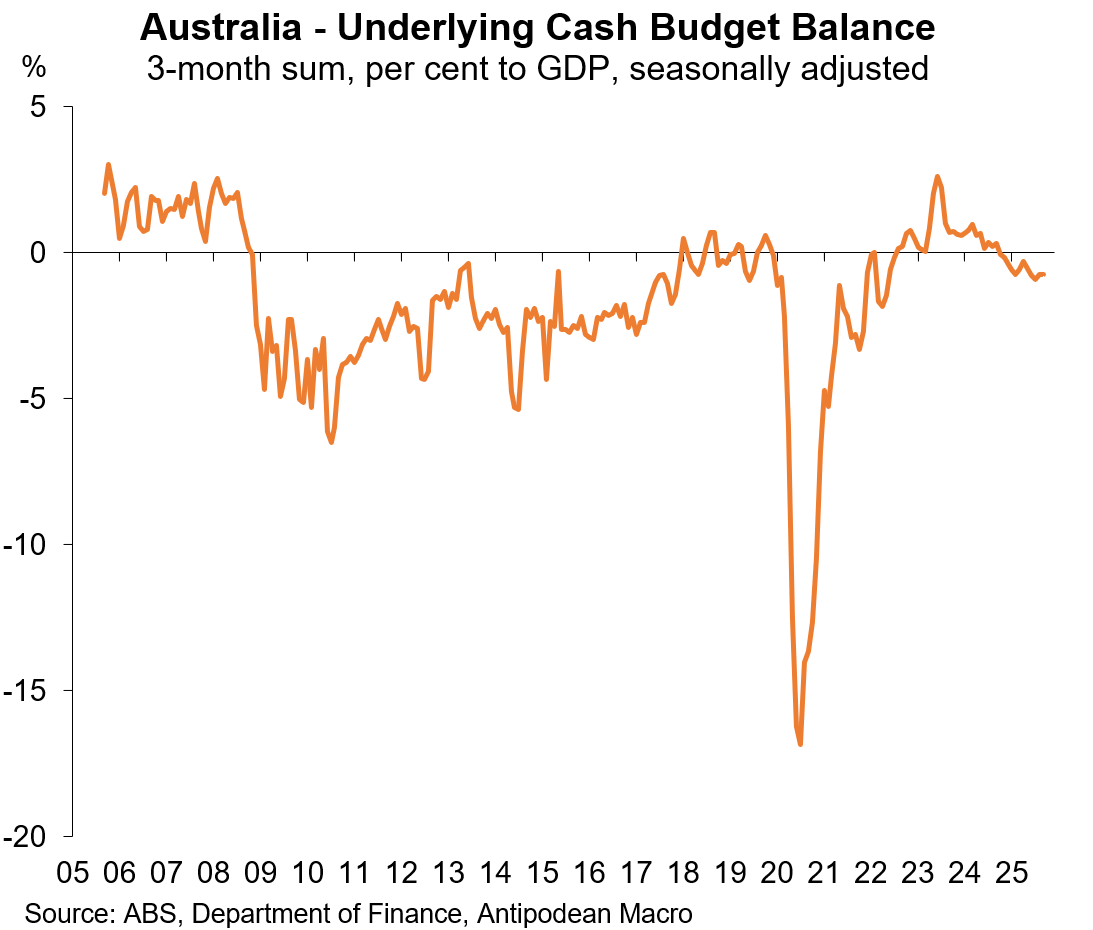 1. The Australian Government’s underlying budget deficit was ~0.8% of GDP in Q3…