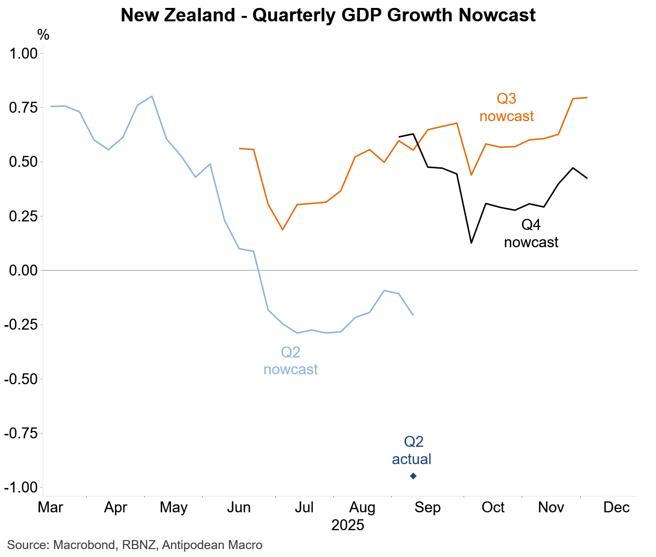 1. The RBNZ’s latest nowcast of Q3 GDP growth remained at a health +0.8% q/q.