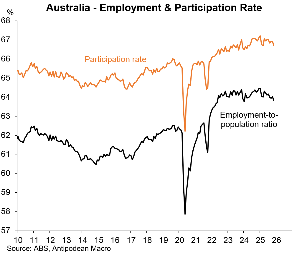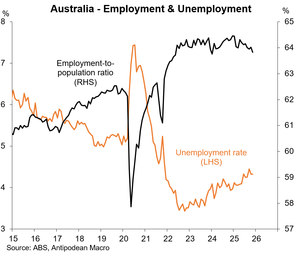 Australia’s labour market report for November was soft. While the unemployment rate was unchanged, measured employment and the participation rate both declined. The ABS noted collection issues for one survey cohort in NSW: