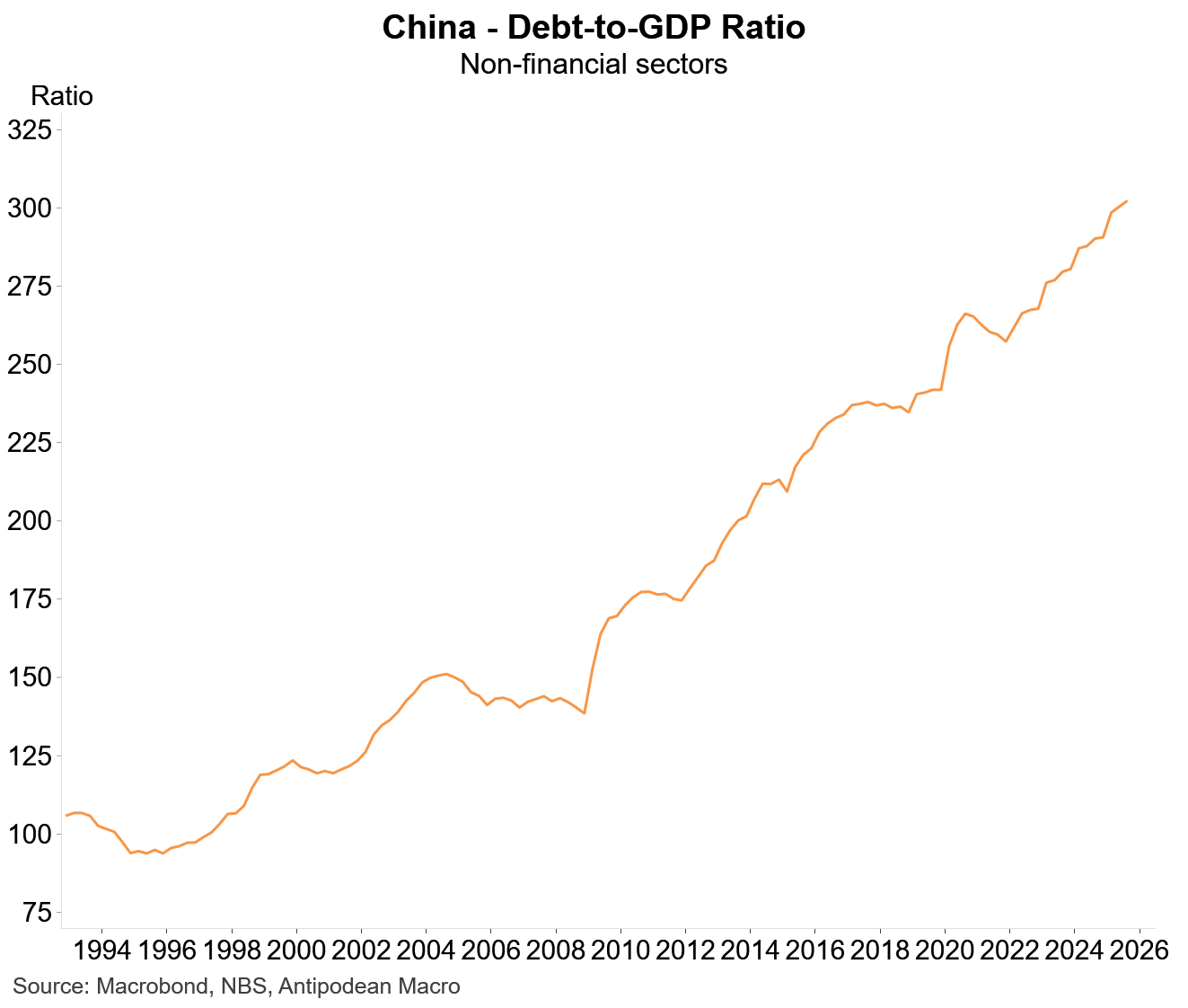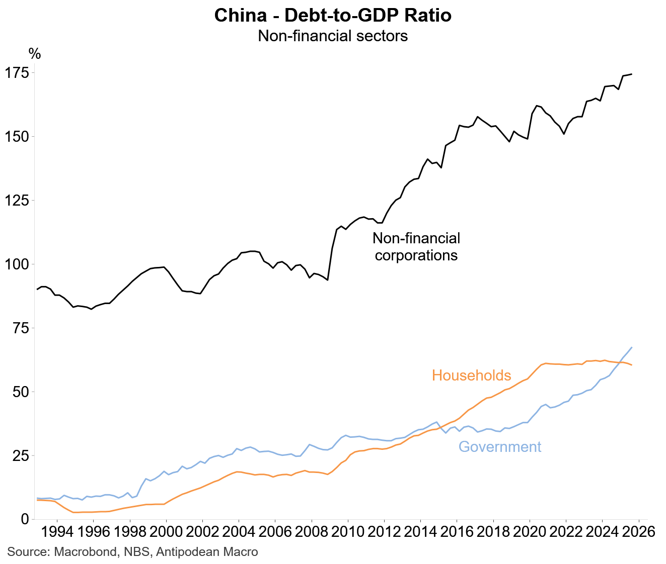 The backdrop here is one of rising debt-to-GDP in China’s non-financial sector, particularly government debt.
