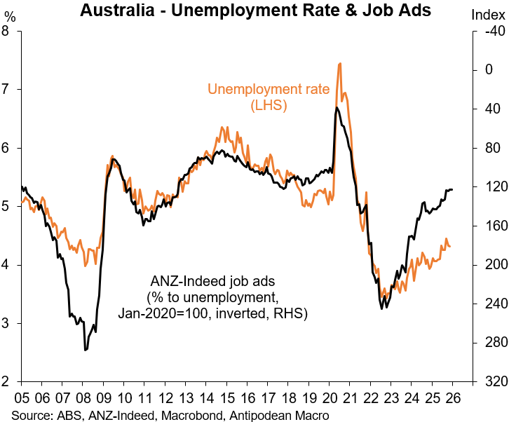 1. According to ANZ-Indeed, the stock of job ads declined 0.5% m/m in December.