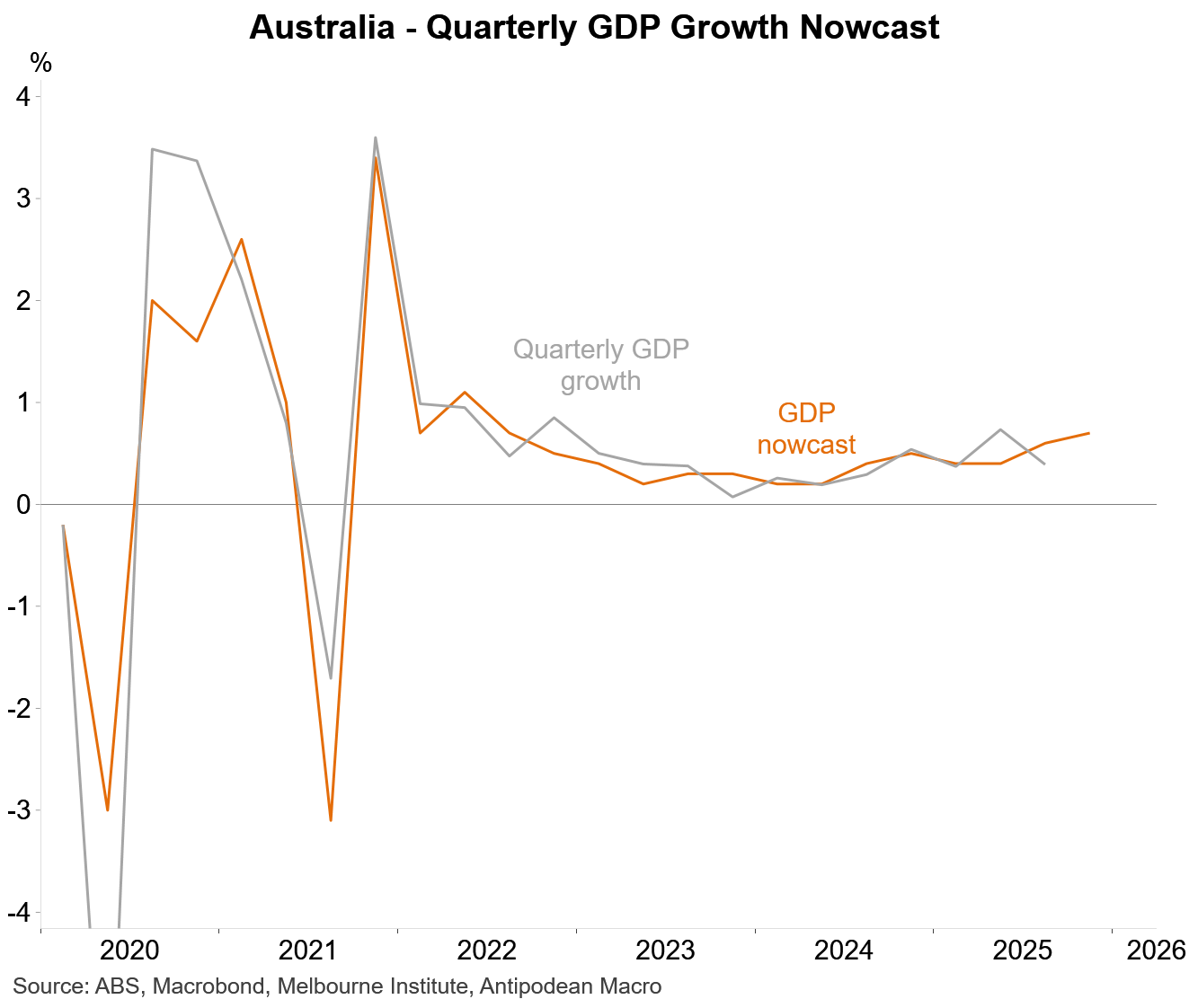1. Melbourne Institute’s latest nowcast for Australia’s Q4 GDP growth was upgraded to +0.7% q/q. Our running estimate is a bit higher than that.