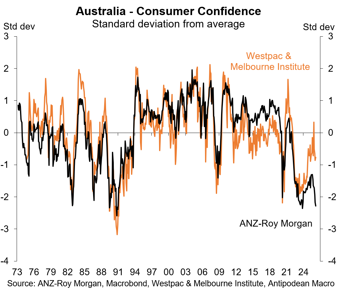 In contrast, the weekly ANZ-Roy Morgan measure has fallen further so far this month.