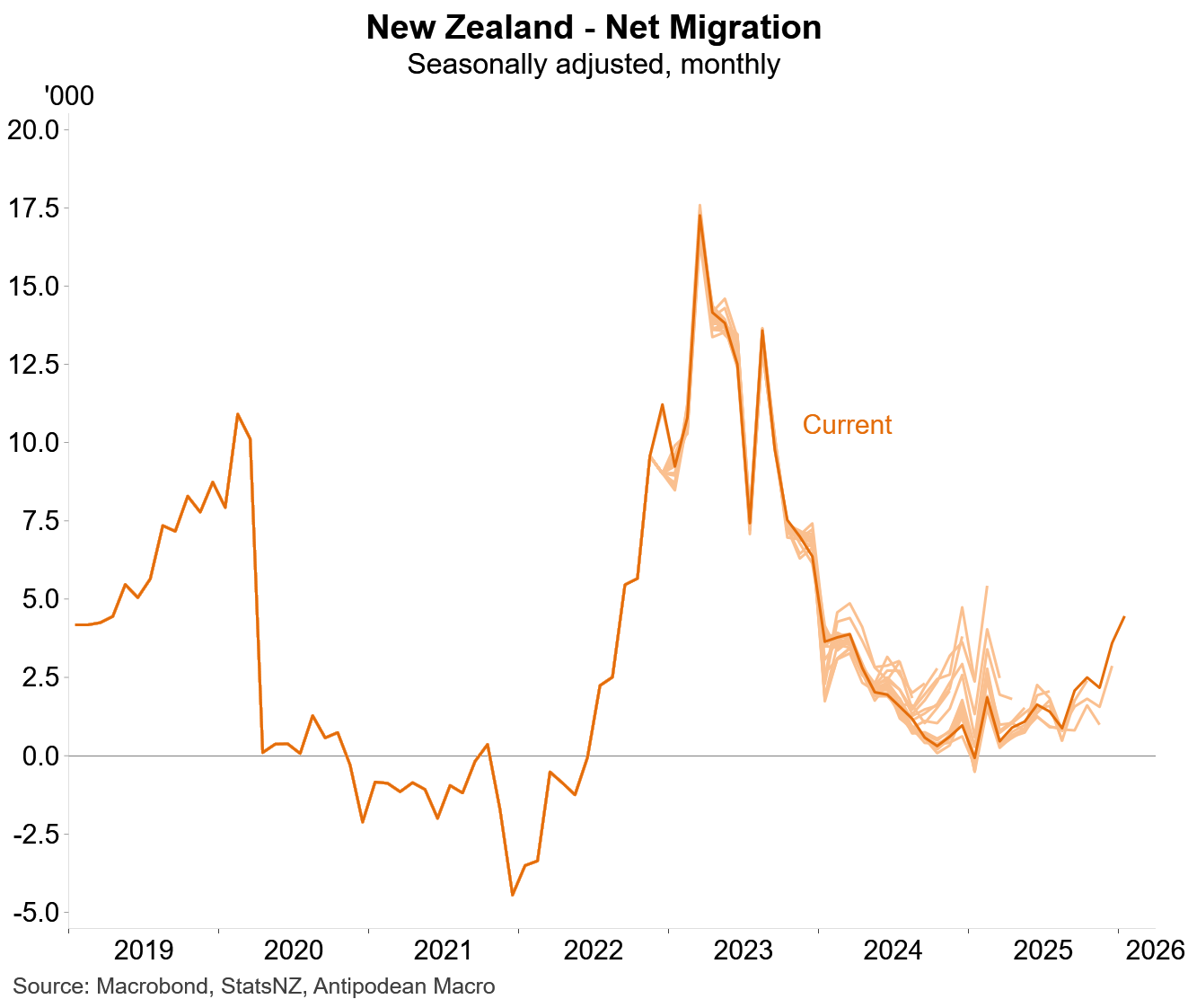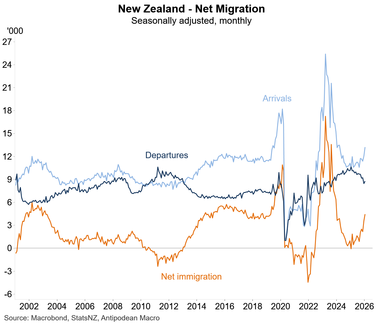 1. Monthly estimates of New Zealand’s net immigration increased in January and there were upward revisions to recent prior prints.
