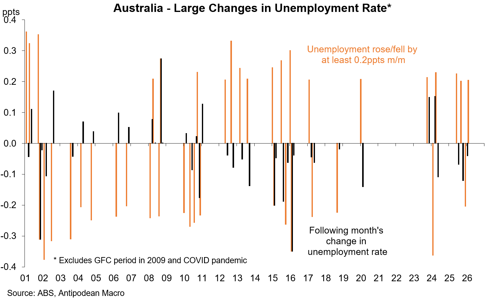 There has been a cluster of relatively large monthly moved in Australia’s measured unemployment rate in recent months.