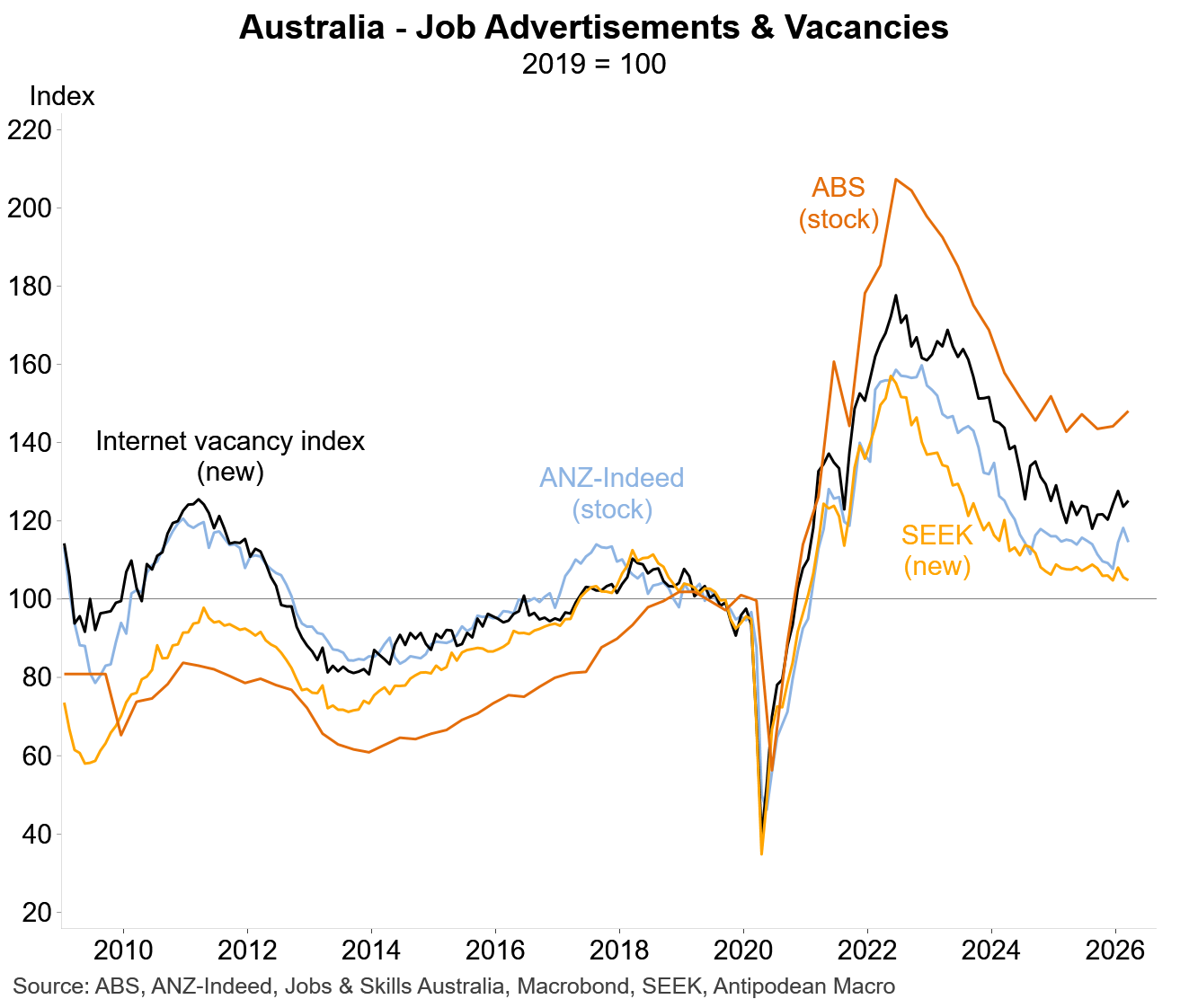 We put more emphasis on the Internet Vacancy Index which captures online job ads from multiple websites (and de-duplicates).