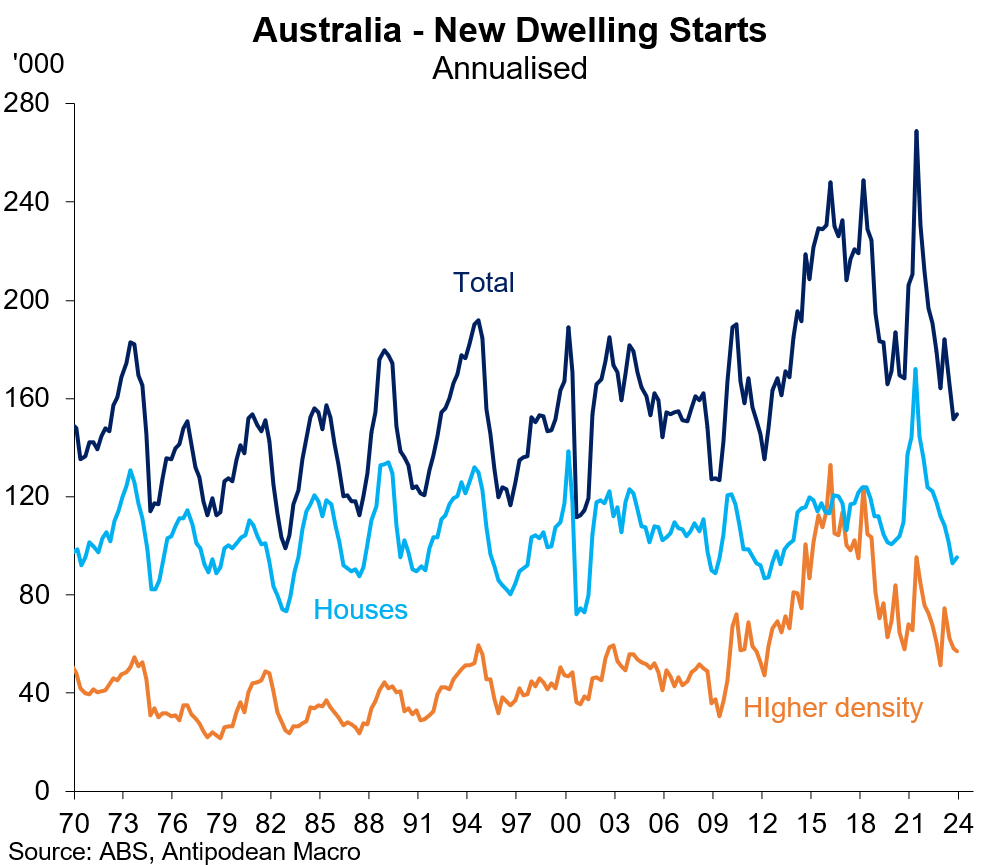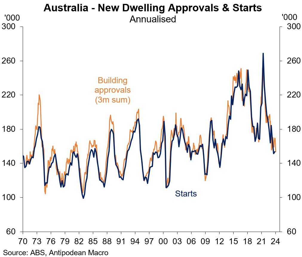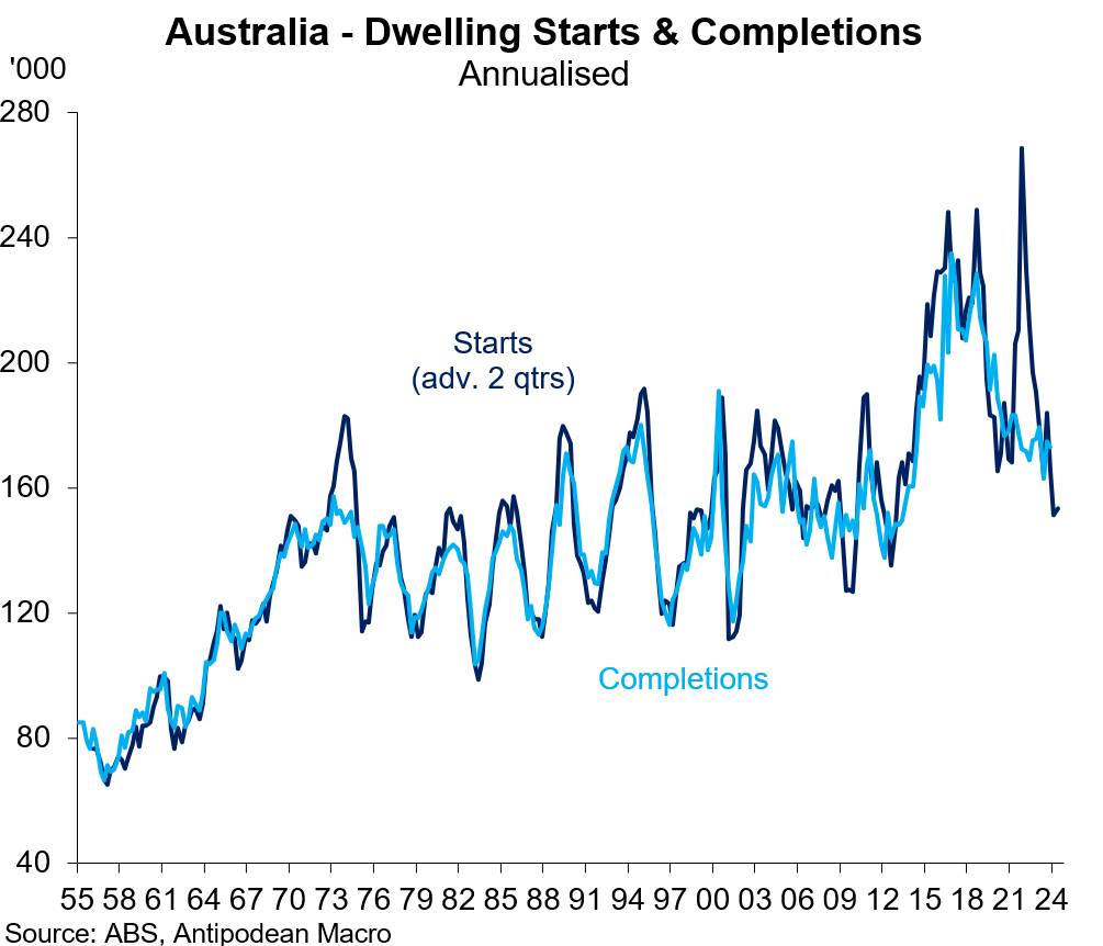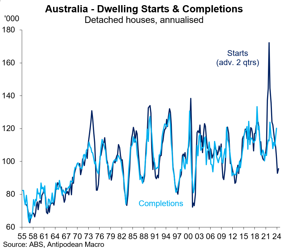 2. Dwelling completions in Australia are likely to hold up in the near-term given the significant ‘excess’ starts in recent years.