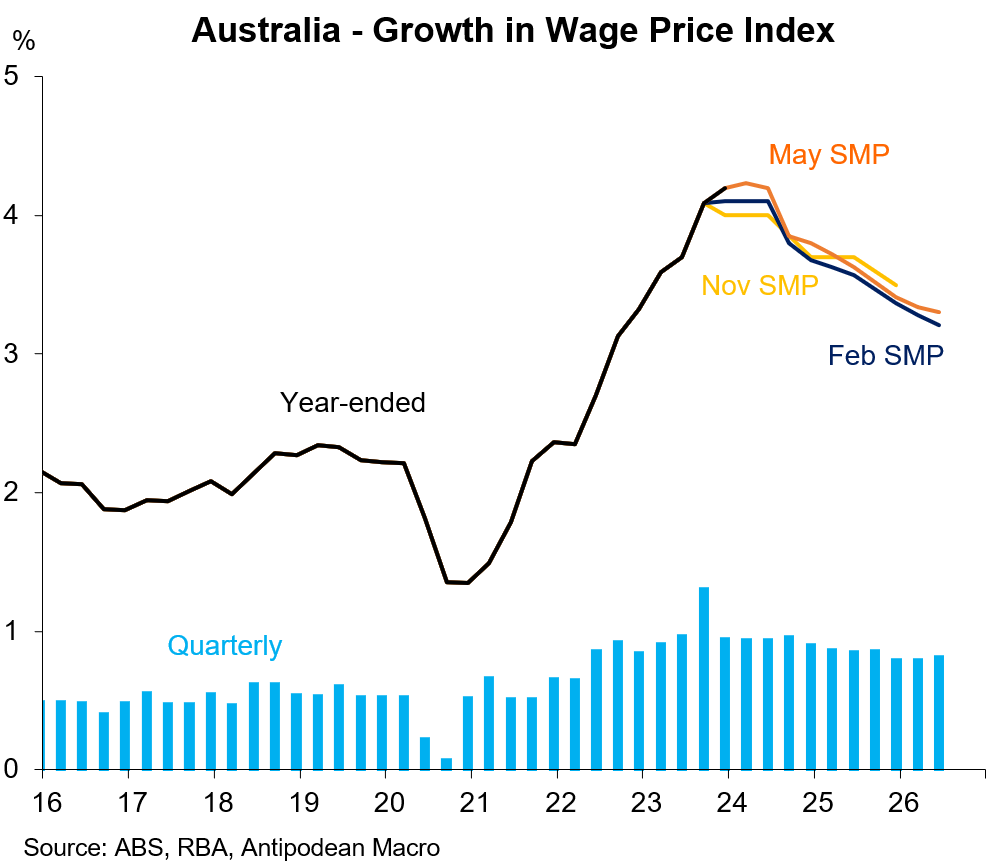 4. The RBA expects wages growth to ease more gradually than previously expected, reflecting both the strength in recent wage outcomes and the slightly stronger outlook for the labour market.